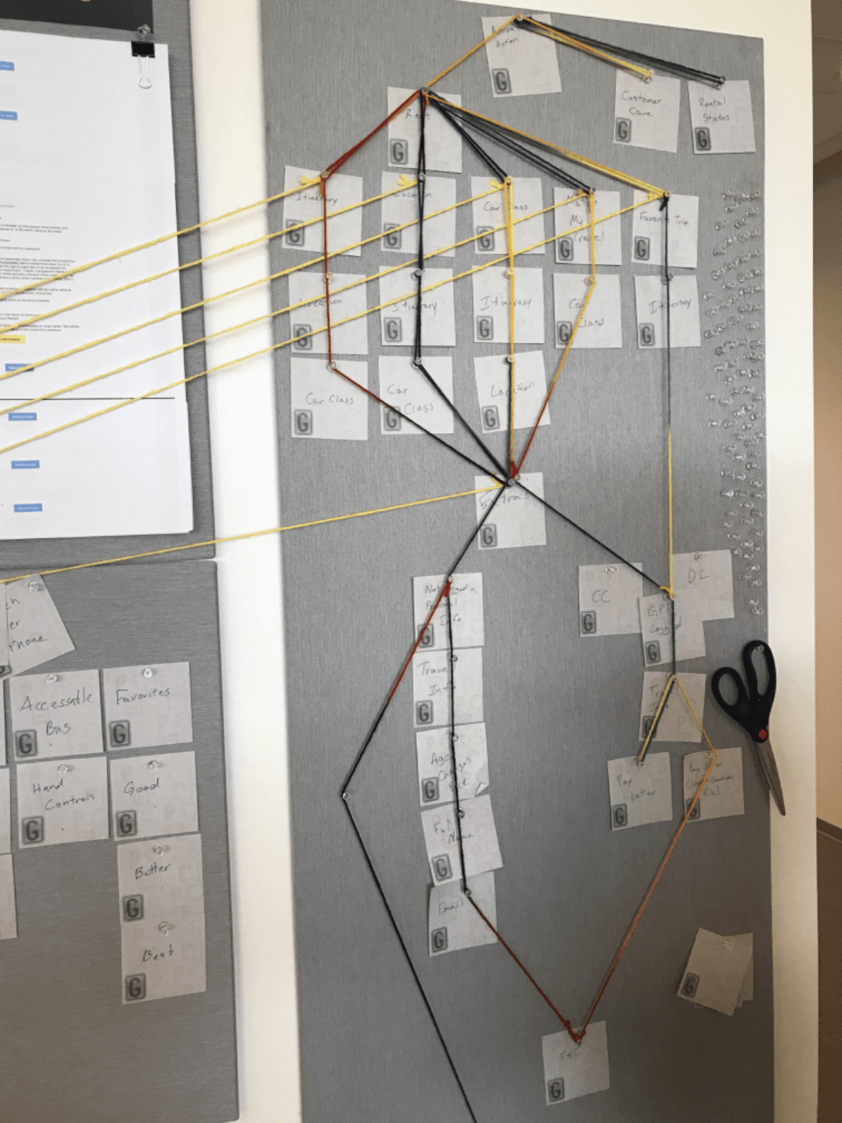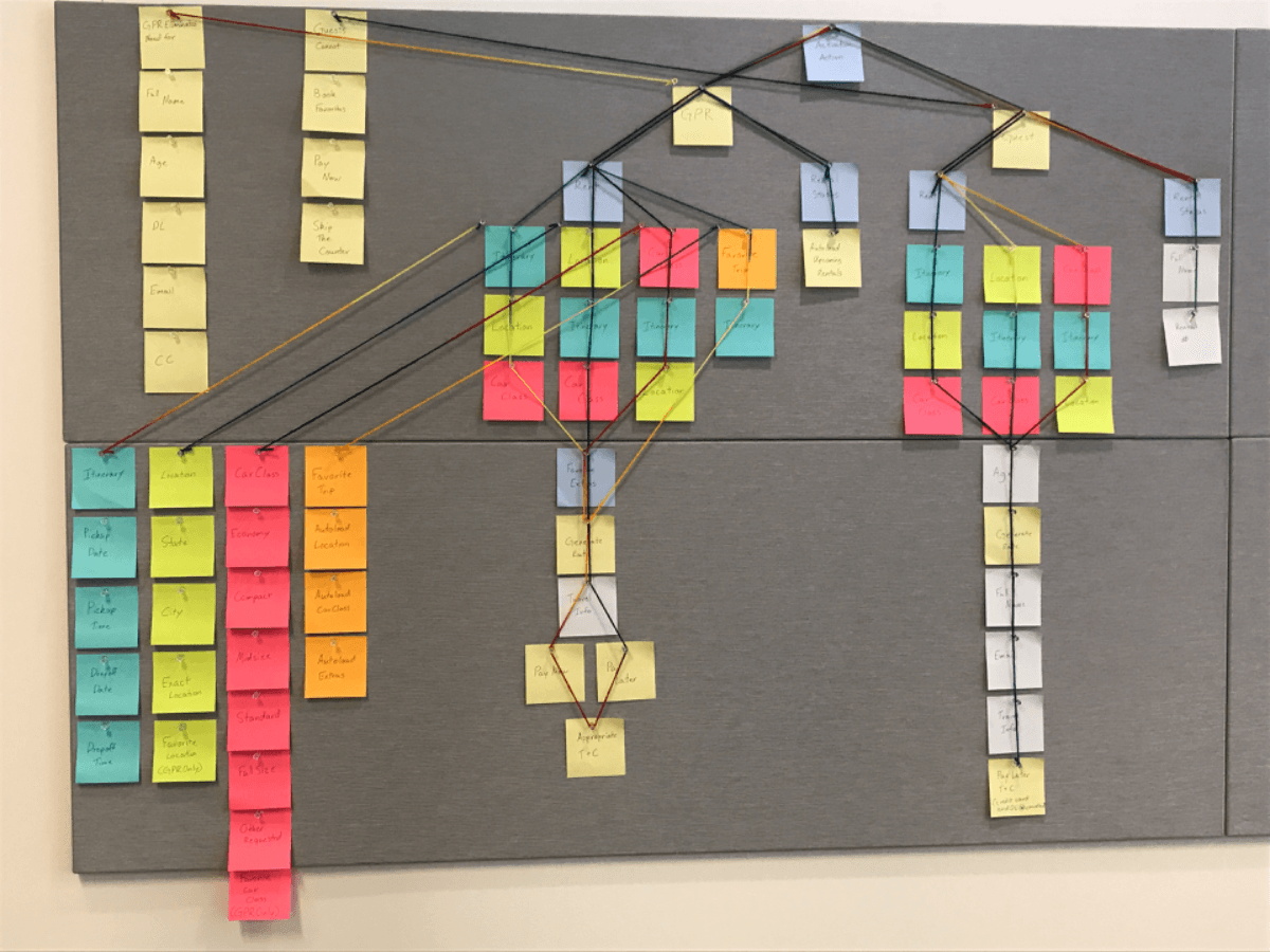 Designed visual artifacts: post-it stringboards, flowcharts, and early marketing visuals